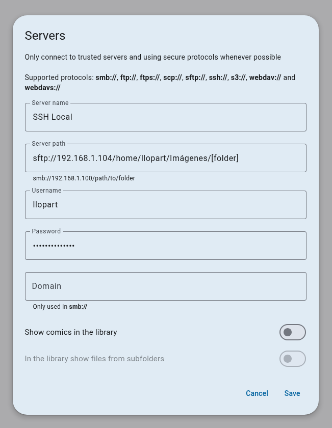 OpenComic can connect to different local or external servers using various protocols.
